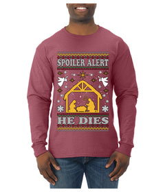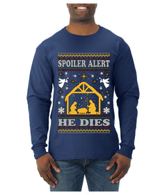 Spoiler Alert He Dies Nativity Scene, Ugly Christmas Sweater Unisex Mens Long Sleeve Shirt