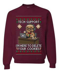 Tech Support I'm Here To Delete Your Cookies, Unisex Ugly Christmas Sweater, Crewneck Sweatshirts