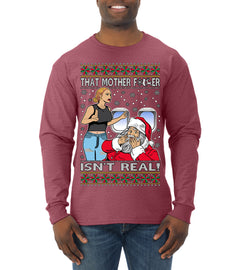 That Santa Mother F Isn't Real CLEAN Ugly Christmas Sweater Mens Long Sleeve Shirt