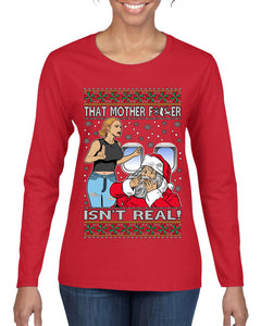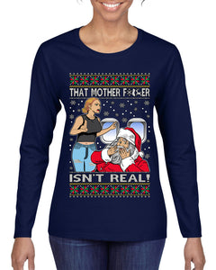 That Santa Mother F Isn't Real CLEAN Ugly Christmas Sweater Womens Graphic Long Sleeve T-Shirt