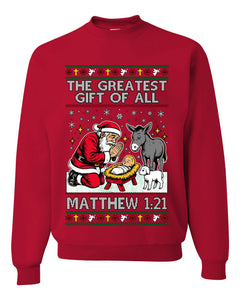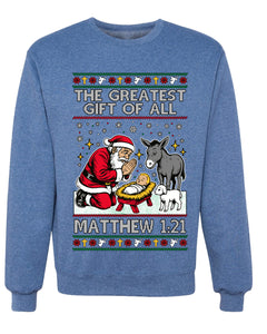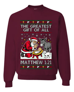 The Greatest Gift Of All Matthew 1:21, Unisex Ugly Christmas Sweater, Crewneck Sweatshirts