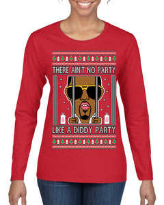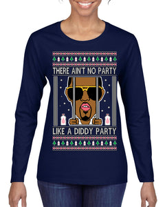 There Ain't No Party Like a Diddy Party Funny Classic Ugly Christmas Sweater Womens Graphic Long Sleeve T-Shirt