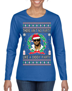 There Ain't No Party Like a Diddy Party, Funny Crazy Party Viral Music Baby Oil Meme, Men Women Ugly Christmas Sweater Womens Graphic Long Sleeve T-Shirt