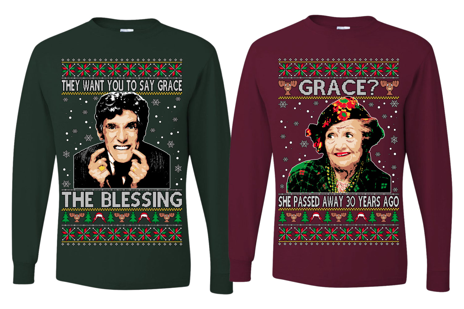 They Want You to Say Grace The Blessing, Grace She Passed Away 30 Years Ago Couples Shirt Girlfriend Boyfriend Gift His and Hers Matching Ugly Christmas Couple Long Sleeve Shirt