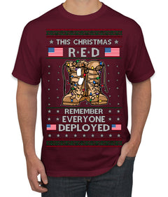 This Christmas RED Remember Everyone Deployed Veteran Ugly Christmas Sweater Men's T-Shirt