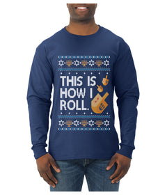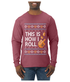 This Is How I Roll Dreidel Hanukkah, Ugly Christmas Sweater Unisex Mens Long Sleeve Shirt