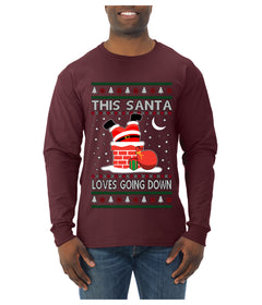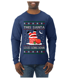 This Santa Loves going down, Funny dirty Humor, Ugly Christmas Sweater Mens Long Sleeve Shirt