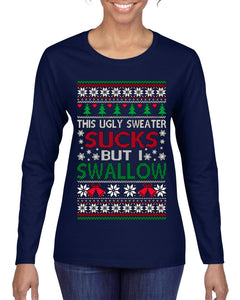 This Ugly Sweater Sucks But I Swallow Ugly Christmas Sweater Womens Graphic Long Sleeve T-Shirt