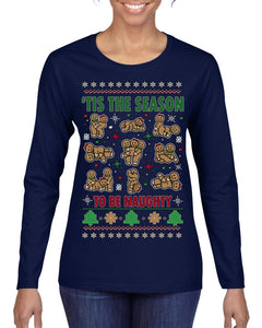 Tis' The Season To Be Naughty Unisex Ugly Christmas Sweater Womens Graphic Long Sleeve T-Shirt