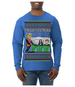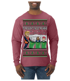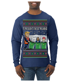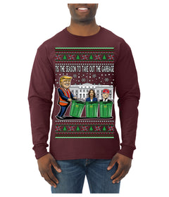 Tis the Season to Take Out the Garbage President Trump Ugly Christmas Sweater Mens Long Sleeve Shirt