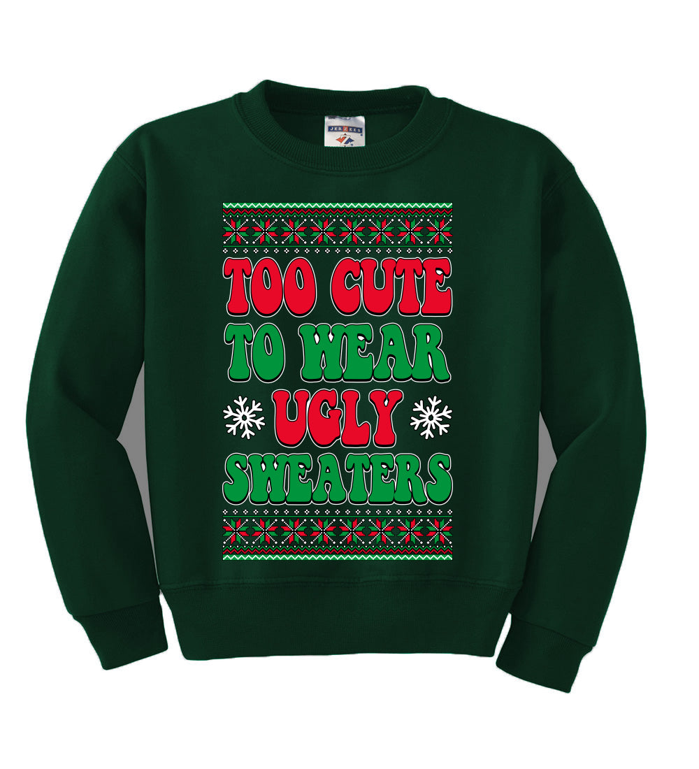Too Cute For Ugly Sweaters Christmas Unisex Boys Girls Crewneck Graphic Sweatshirt