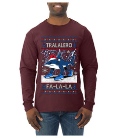 Tralalero Fa La La Brainrot, Ugly Christmas Sweater Mens Long Sleeve Shirt