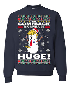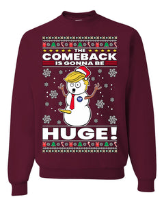 Trump 2024 The Comeback Is Gonna Be HUGE Ugly Christmas Sweater Unisex Crewneck Graphic Sweatshirt