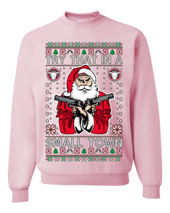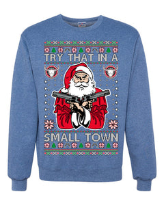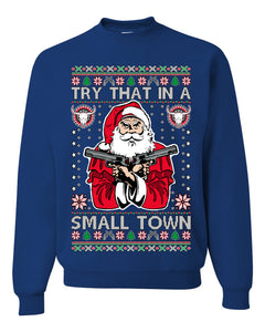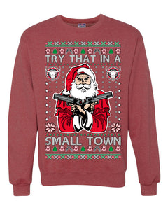 Try That In A Small Town Christmas Ugly Christmas Sweater Unisex Crewneck Sweatshirt