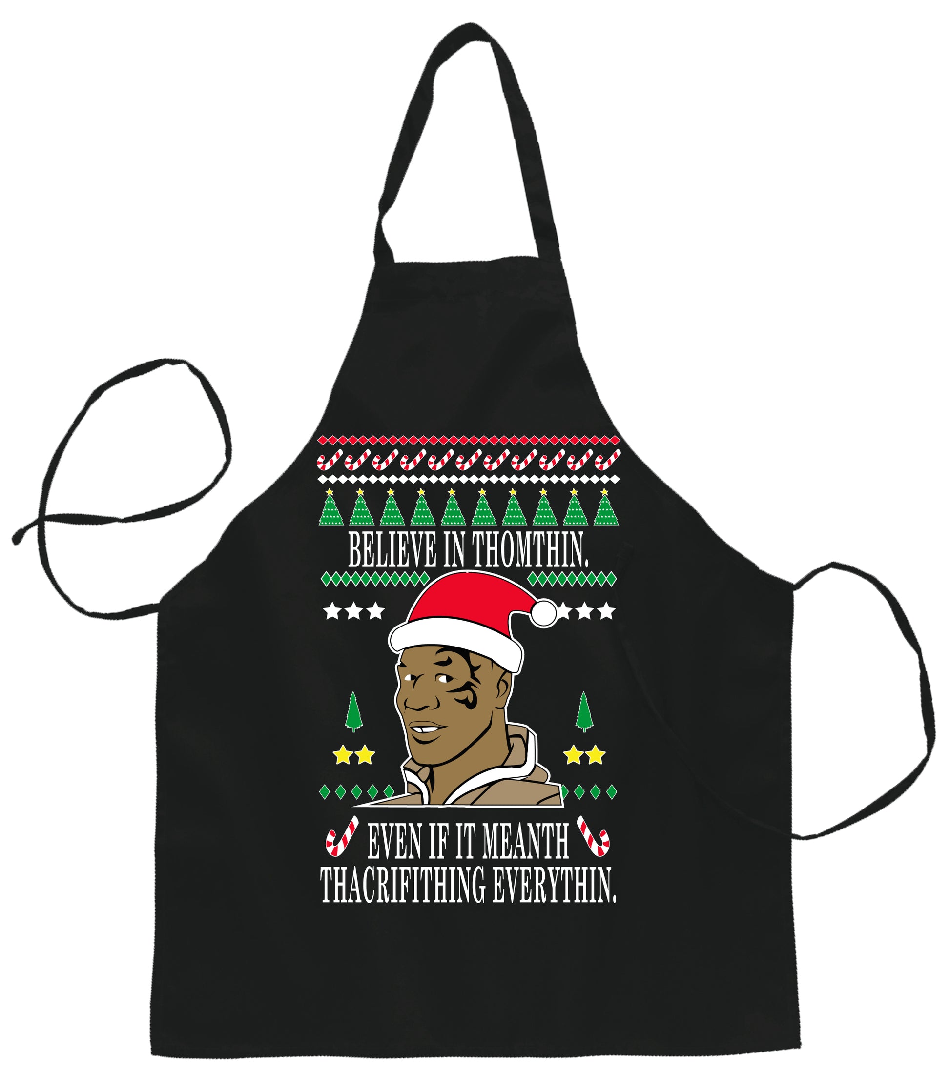 Lisp Believe in Thomthin Thacrifithing Everythin Christmas Ugly Christmas Sweater Ugly Christmas Butcher Graphic Apron for Kitchen BBQ Grilling Cooking