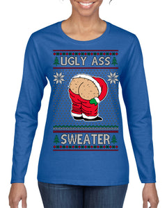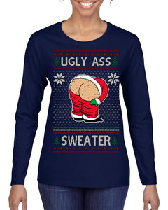 Ugly Ass Sweater Funny Santa Claus Butt Xmas Ugly Christmas Sweater Womens Graphic Long Sleeve T-Shirt