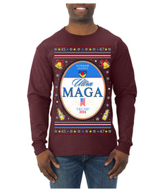 Ultra MAGA Superior Agenda Trump 2024 Funny Beer Logo Ugly Christmas Sweater Mens Long Sleeve Shirt