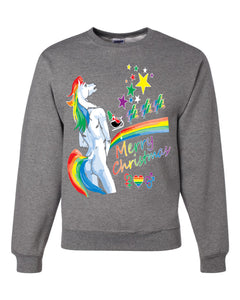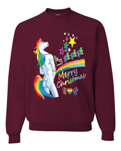 Unicorn Pissing Rainbow Merry Ugly Christmas Sweater Unisex Crewneck Graphic Sweatshirt