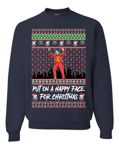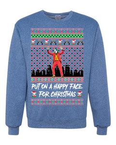 Villain Put on a Happy Face for Christmas Ugly Christmas Sweater Unisex Crewneck Graphic Sweatshirt