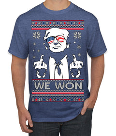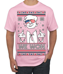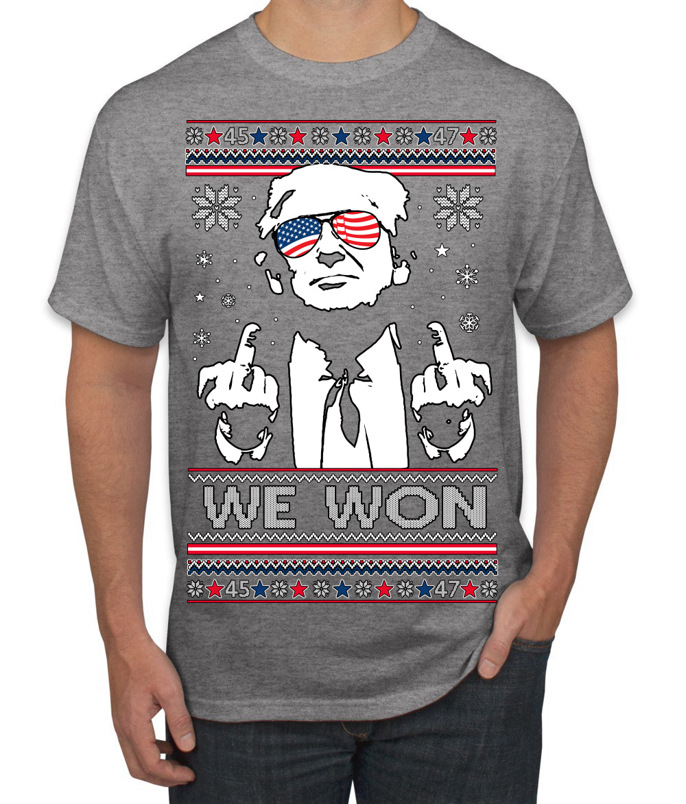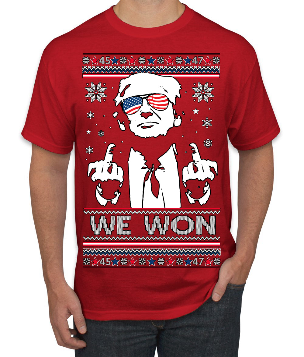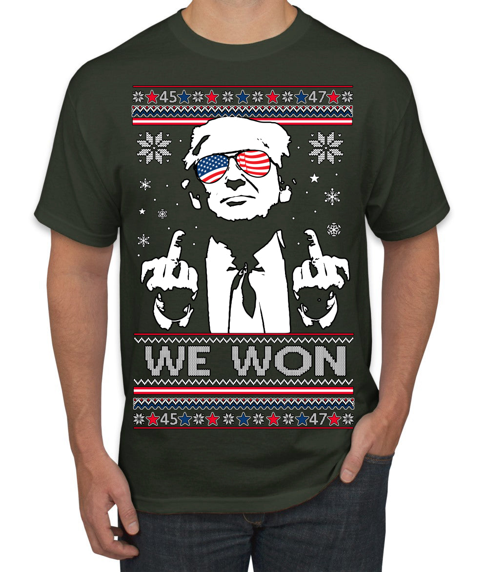 We Won Funny 45 47 President Trump Shot USA Glasses Ugly Christmas Sweater Men's T-Shirt