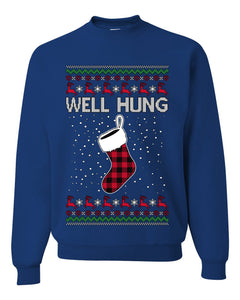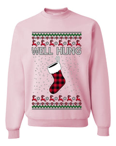 Well Hung, Unisex Ugly Christmas Sweater Crewneck Sweatshirts