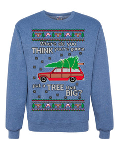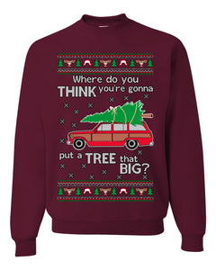 Where-Do-You-Think-You're-Gonna-Put-A-Tree-That-Big-Colored Ugly Christmas Sweater Unisex Crewneck Sweatshirt