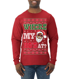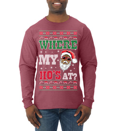 Where My Ho's At? Ugly Christmas Sweater Mens Long Sleeve Shirt