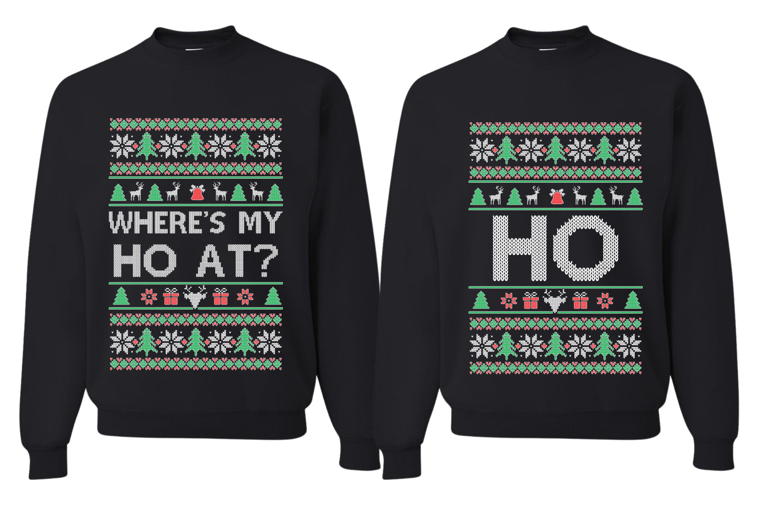 Where's My Ho At? Ho Sweater Girlfriend Boyfriend Gift His and Hers Matching Ugly Christmas Couple Crewneck Sweatshirt