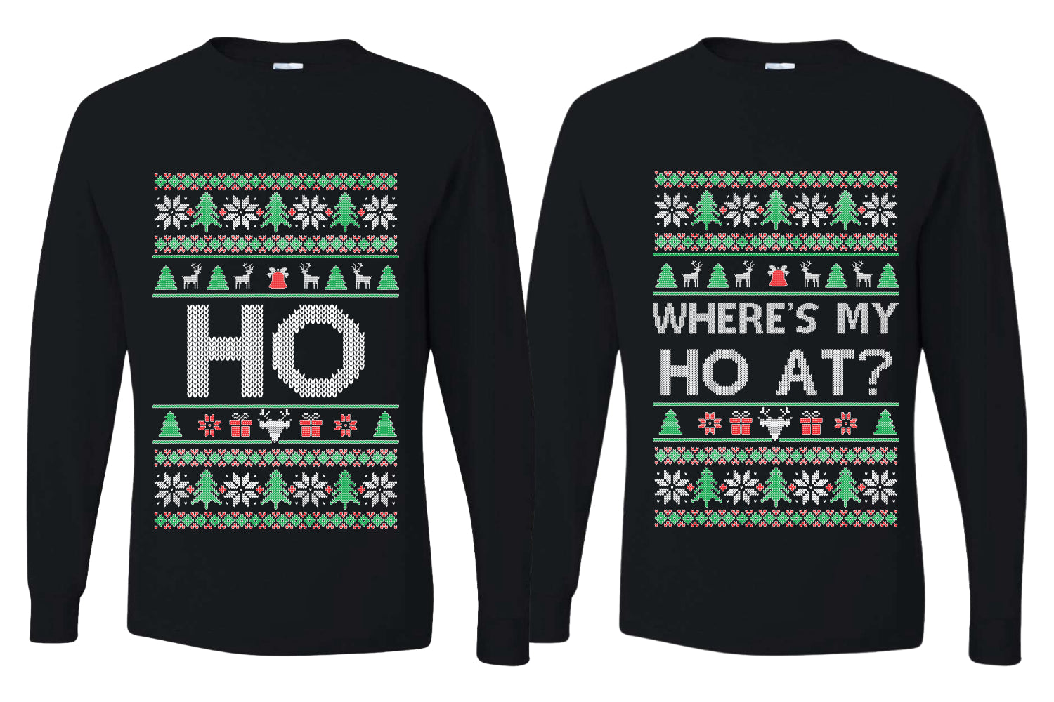 Where's My Ho At? Ho Sweater Girlfriend Boyfriend Gift His and Hers Matching Ugly Christmas Couple Long Sleeve Shirt