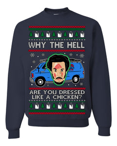 Why the Hell are You Dressed Like a Chicken? Funny Movie Ugly Christmas Sweater Crewneck Sweatshirt