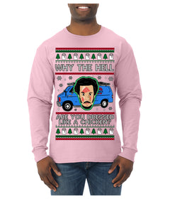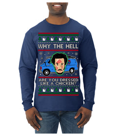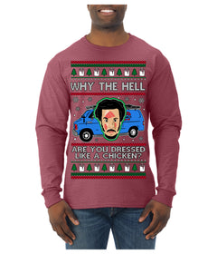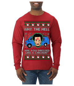 Why the Hell are You Dressed Like a Chicken? Funny Movie Ugly Christmas Sweater Mens Long Sleeve Shirt