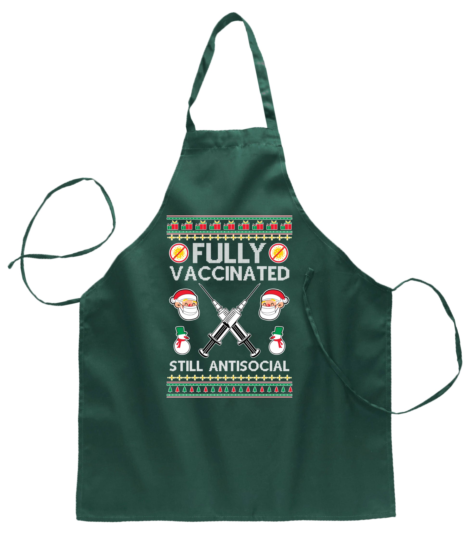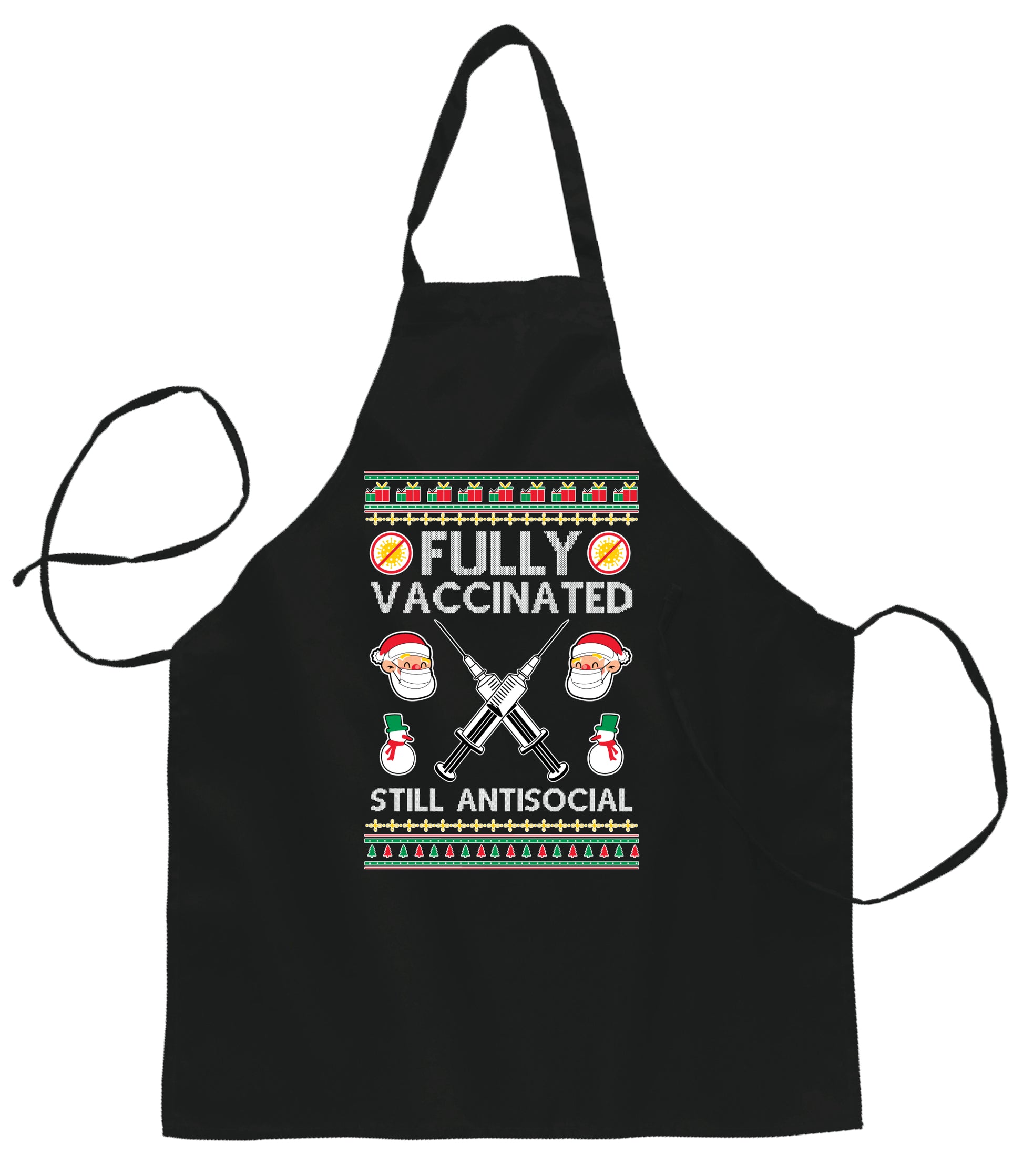 Ugly Ugly Christmas Fully Vaccinated Still Antisocial Ugly Christmas Sweater Ugly Christmas Butcher Graphic Apron for Kitchen BBQ Grilling Cooking