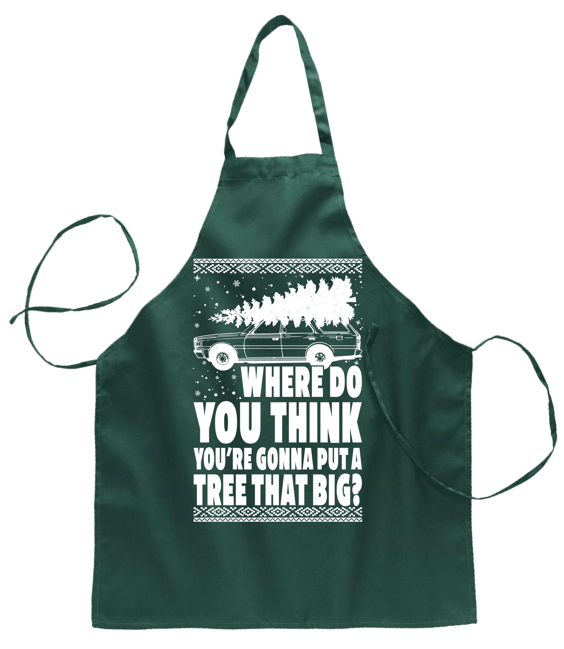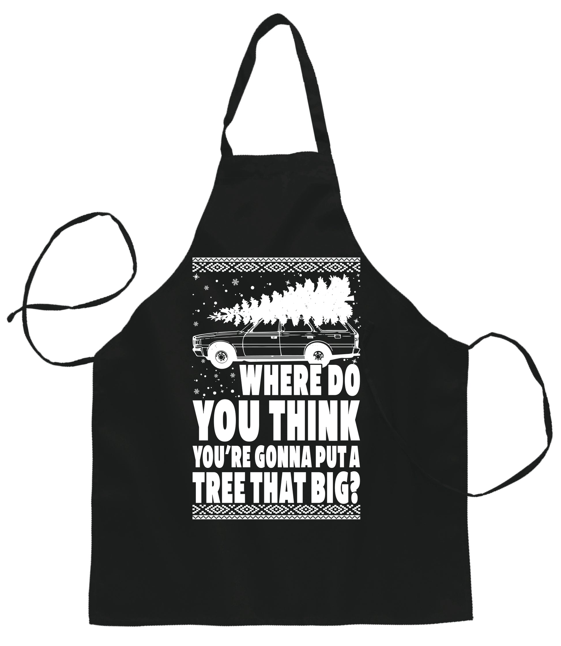 Ugly Ugly Christmas Where Do You Think You're Gonna Put A Tree That Big for Kitchen Cooking Ugly Christmas Sweater Ugly Christmas Butcher Graphic Apron for Kitchen BBQ Grilling Cooking