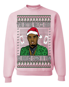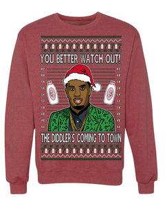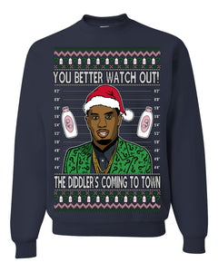 You Better Watch Out, the Diddler's Coming to Town, Funny Santa P Diddy Diddler Funny Party Viral Music Baby Oil Meme Ugly Christmas Sweater Crewneck Sweatshirt