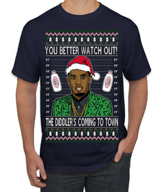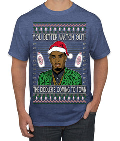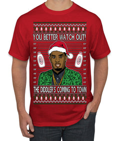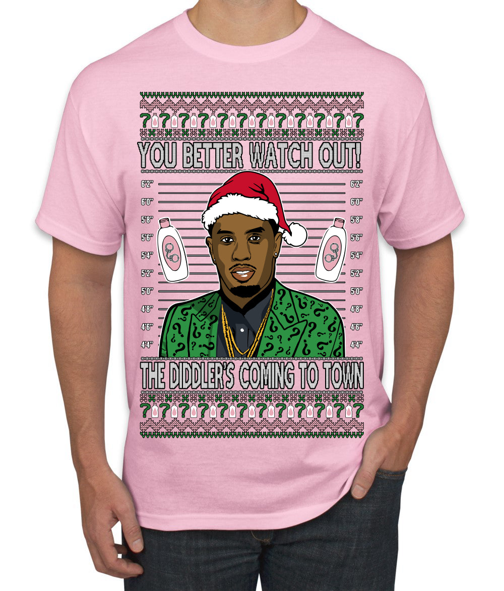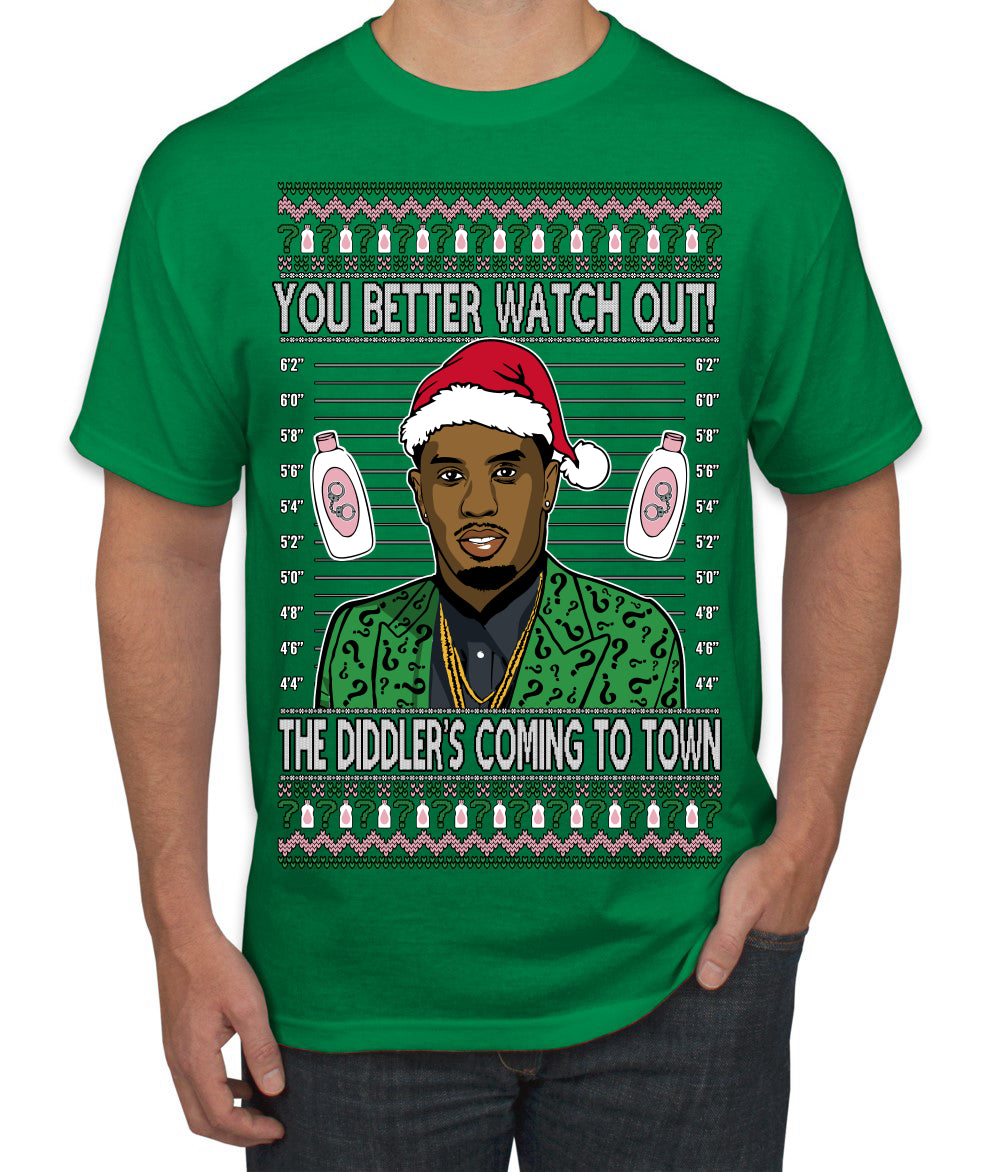 You Better Watch Out, the Diddler's Coming to Town, Funny Santa P Diddy Diddler Funny Party Viral Music Baby Oil Meme Ugly Christmas Sweater Men's T-Shirt