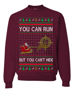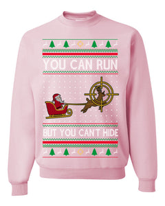You Can Run But You Can't Hide Santa Sleigh Reindeer Ugly Christmas Sweater Crewneck Sweatshirt