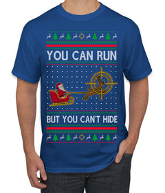 You Can Run But You Can't Hide Santa Sleigh Reindeer Ugly Christmas Sweater Men's T-Shirt