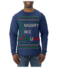 Naughty Nice Italian Funny Italians Italy Colors Ugly Christmas Sweater Mens Long Sleeve Shirt