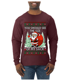 You Should See The Size Of My Sack Naughty Santa, Ugly Christmas Sweater Unisex Mens Long Sleeve Shirt