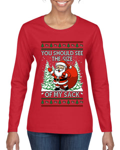 You Should See The Size Of My Sack Naughty Santa, Ugly Christmas Sweater Womens Graphic Long Sleeve T-Shirt