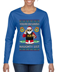 You're On Santa's Naughty List ICE Agent, Ugly Christmas Sweater Womens Graphic Long Sleeve T-Shirt